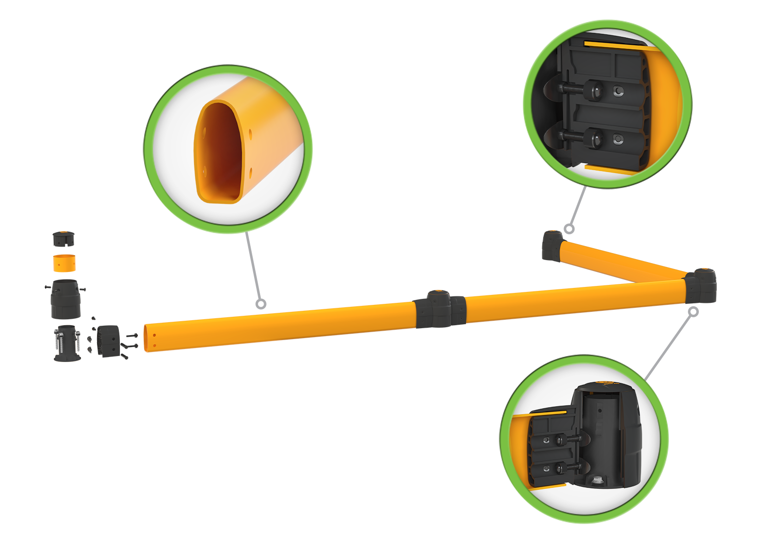FLEX+ Ground Guard is a modular, surface-mounted polymer barrier that protects your facility from low-clearance impacts. Designed to stop forks, stray pallets, and material handling equipment, it installs quickly and defends high-traffic areas from daily wear. Ideal for rack bases, perimeter walls, and interior traffic lanes, FLEX+ Ground Guard delivers long-lasting, low-profile protection — where safety starts from the ground up.